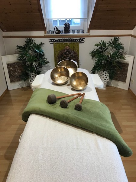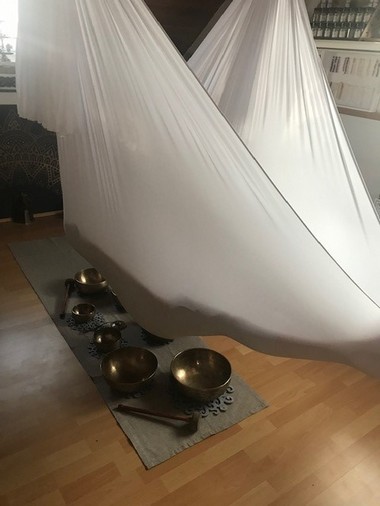 Schwebe in einem großen, weißen, anschmiegsamen Tuch (evtl leicht schauckelnd) ca. 5 cm über harmonisch-abgestimmten tibetischen Klangschalen und genieße - wie in eine Wolke gehüllt - ihren sanften tiefgehenden Klang. Lasse Dich tragen von den leichten Klang-Vibrationen ...
